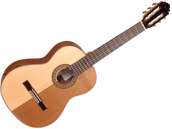 The use of Cedar tops in Classical guitars started with Jose Ramirez III in 1965. This discovery was later adopted by, practically all guitar manufacturers in the world, although, at the beginning it was highly criticized because of its innovative nature. A guitar with Cedar top need less time to reach it full potential in sound but stop improving sooner that the ones with spruce tops. Cedar Tops have a soft attack, and are sensitive. The have a ‘warm’ mysterious tone. Does not have a wide tone palette, not tonally complex.