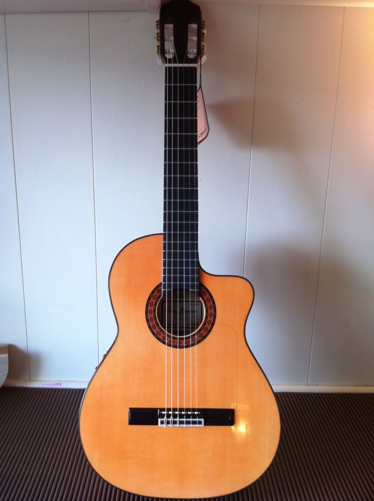 One of the great things about working directly with the manufacturer is the possibility of customizing some standard models of guitars in order to adapt them to some special needs. This is the case of the Flamenco guitar Raimundo 646 MIDI that we have just received today for a client that 2 months ago asked for the possibility of ordering a model 646 MIDI with a neck of 62mm. This client have big hands and big fingers, and found quite difficult to perform well in a standard 50-52mm neck width flamenco guitar. He loved the Raimundo 646 MIDI and wandered if it was possible to order it with a wider neck. We asked the people at Raimundo and the said: No problem. In 8-10 weeks your client can have the guitar he wants. Just tell us the details of the modifications. 9 weeks later we have this adapted 646 MIDI with all the specifications of this wonderful guitars and the neck that our client wanted.