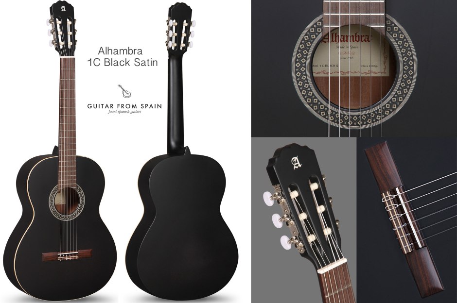 Alhambra presented a new color for its popular entry level model 1C. The Alhambra 1C Black Satin. This beautiful guitar features a solid cedar top, mahogany back and sides and rosewood fingerboard and bridge. The new black satin finish gives the guitar a very interesting and inusual look on a classical guitar.