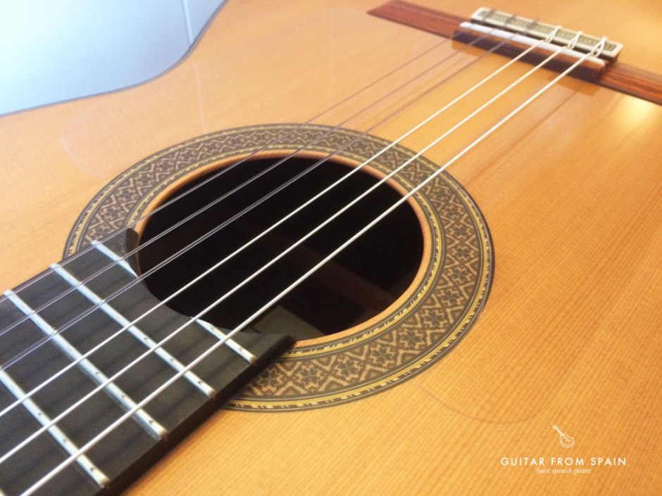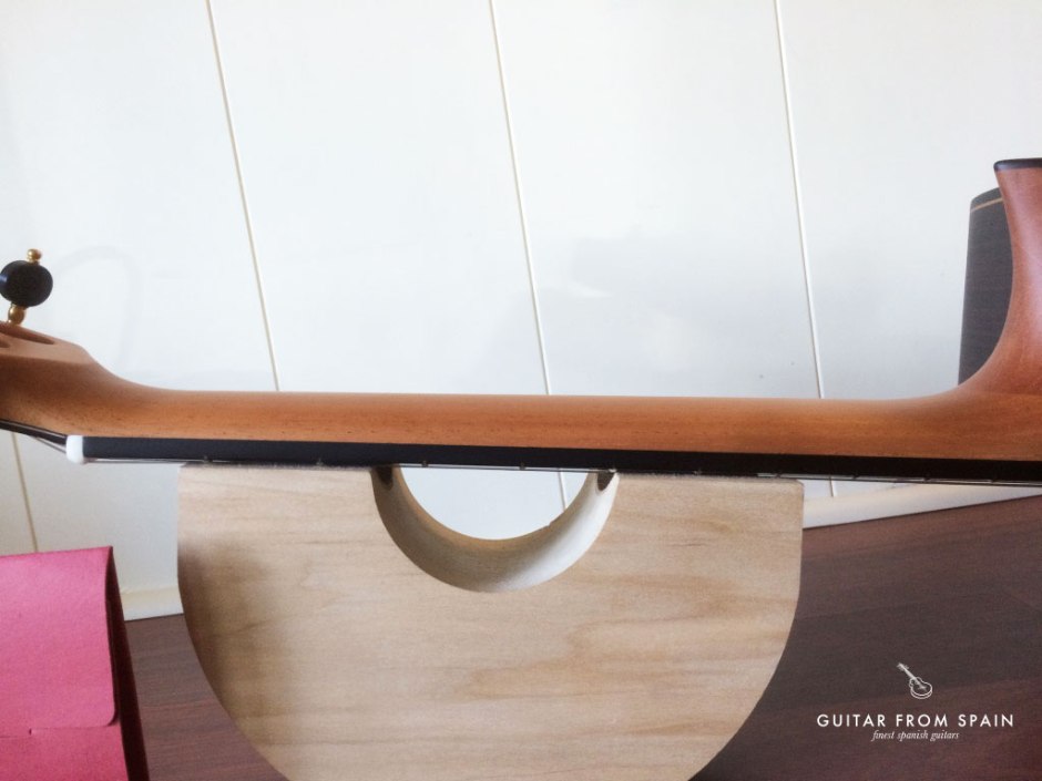 But there is something else that attracted my attention. I felt that my left hand was playing faster and more comfortably than normal (my left hand is not as fast as I would like it to be, perhaps that’s why I was so impressed). Then I remembered something that the Alhambra’s representative told me in his last visit. They have introduced a new profile neck in this guitar with a smaller thickness. Yes!! I like it. It feels so good. At least for me. Not too thin, not too thick. Just right. Of course, the same satin finish is applied to the neck and that makes it feel even better.