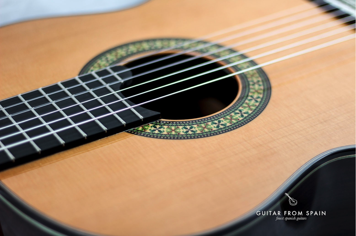 One of these is the Spanish heel, which ensures the smooth transmission of sound waves. In this model, it is made of five pieces, to ensure a robust construction and powerful, pure, voice. Another is the sting action, which is a little bit higher than that of models in the studio line, allowing the guitarist to achieve a mighty projection for a longer period of time.