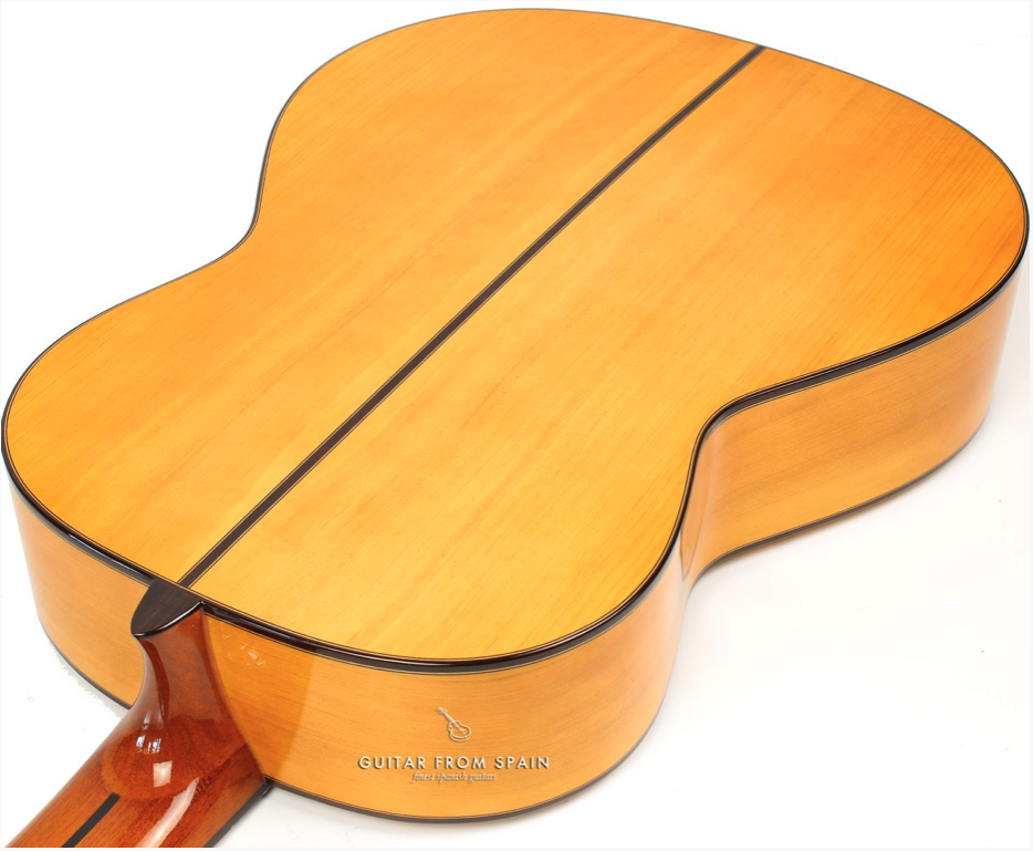 Your description on your website was completely accurate. The action was set in flamenco fashion, wonderful ergonomics, feeling low and even but surprisingly with a lot of clarity and not too much buzz. I didn’t feel at all that I was fighting the action or trying to compensate. It was just right! Also, the tone was round, full and warm, but could be pushed to the bright side when I wanted. It was so easy to control different tone qualities throughout all the entire fretboard with clarity. The quality of construction and materials is excellent. Also, one thing you said in your description of the instrument about the separation between the voices is especially true. No matter how soft or loud, every voice per each string was completely distinct and blended warmly with the total sound. This guitar is an unbelievable value for the money. I had heard several recordings done with the Camps Primera A Flamenco and fell in love with the sound. Having the guitar in my hands finally, all I had hoped for is true. This is truly a wonderful instrument.