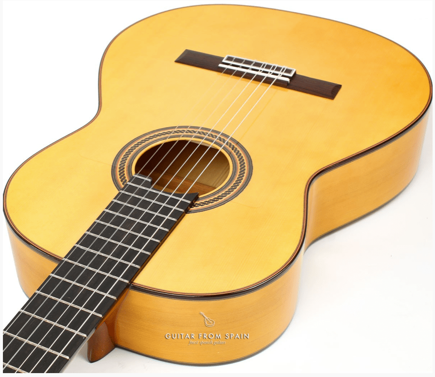 And whatever your playing level, the ergonomic cedar neck (strengthened with a carbon truss rod) allows the hands to move swiftly and easily up and down the fretboard to produce a brilliant and vibrant flamenco sound.
