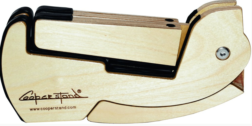 The versatile Cooperstand Pro-GB is designed for travel, stage, studio and home use. Folds up nicely to pack away in a case or gig bag. And if you like to wrap the fillers in your stockings, you’re in luck here. The Cooperstand Pro-GB comes ready-wrapped in a black velveteen bag.