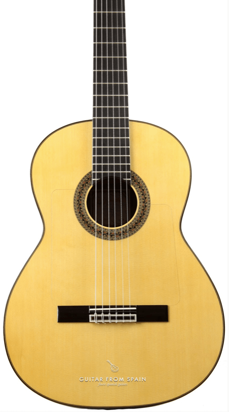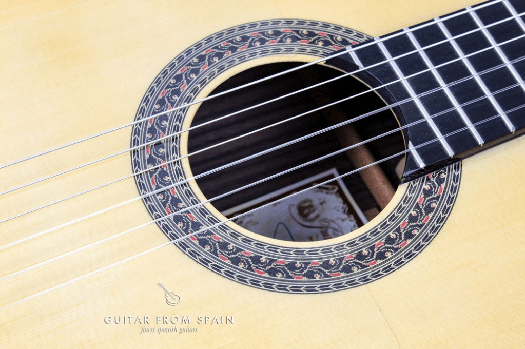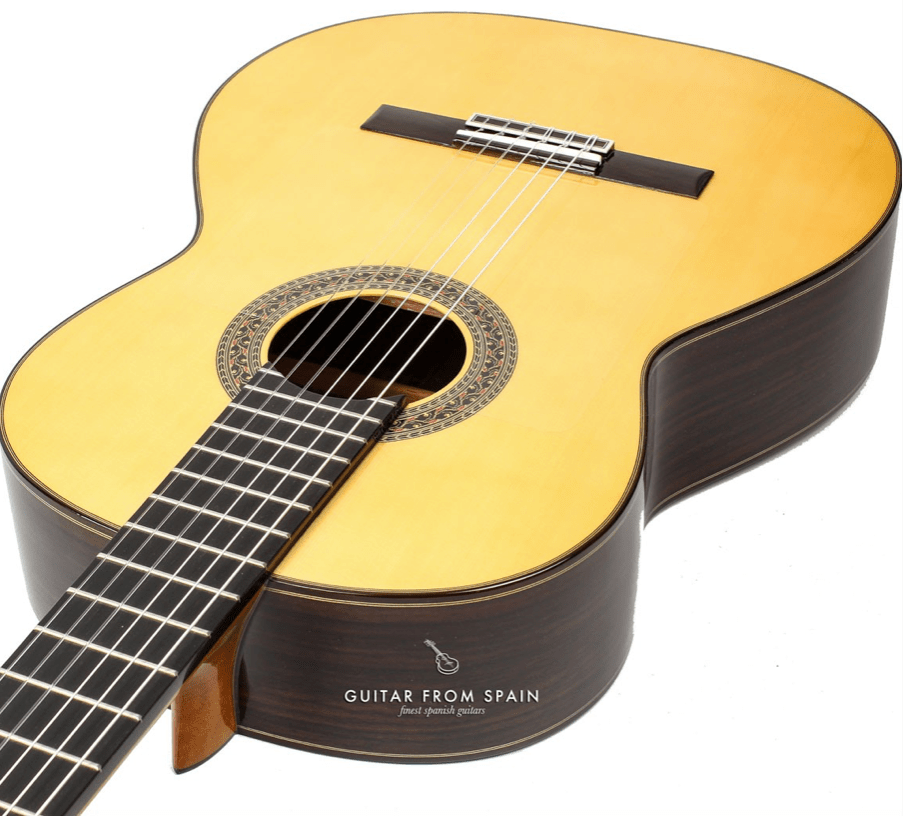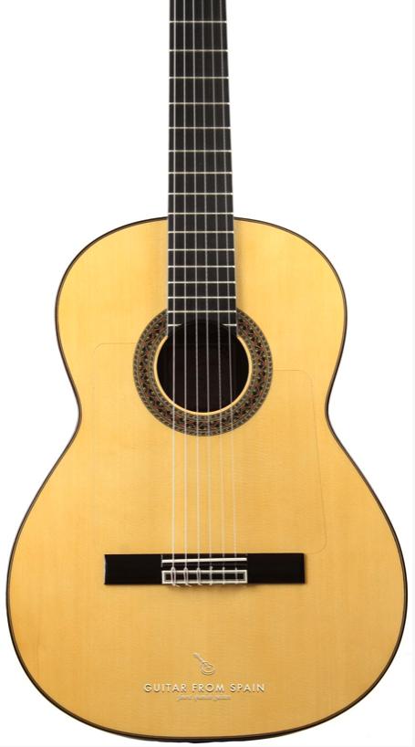 The beauty of a handcrafted flamenco instrument from Prudencio Saez is that every step in the construction process, from selection of woods, to the final polishing of the instrument, is in the hands of artists and musicians who are themselves passionate about the instrument and the materials used to make it. The choice of spruce for the soundboard is literally the top choice here: the amazing tonal qualities of this wood include the warm rich tone that Dominic mentions, which is especially responsive to the powerful fingerpicking techniques of flamenco.