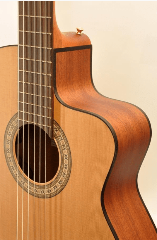 At Alhambra Guitars, their series of open-pore models includes the Laqant College 2, Z-Nature Classical Guitar (pictured above), Z-Nature CW EZ (electro classical guitar), Z-Nature CT EZ (electro classical guitar with thin body). The Laqant College 2, with a solid spruce top and Spanish heel is a superb choice of first instrument at a very affordable price. The Z-Nature Classical Guitar is another entry-level instrument with a solid wood soundboard, this time in cedar, excellent sound output and great projection. The Z-Nature CW EZ and Z-Nature CT EZ are the cutaway versions of this family, making them very affordable electro-classical instruments.