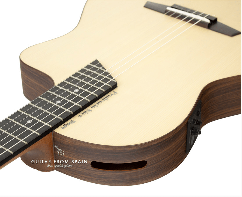 For performing musicians, Prudencio Saez offer two eco-friendly professional models: Prudencio Saez Stage Electro Classical Guitar and Prudencio Saez Shadow Electro Classical Guitar, both with matte, open-pore finish and superb resonance. With a sound port instead of a sound hole, the Prudencio Saez Stage and Prudencio Saez Shadow wink to the future in state-of-the-art looks as well as green credentials.