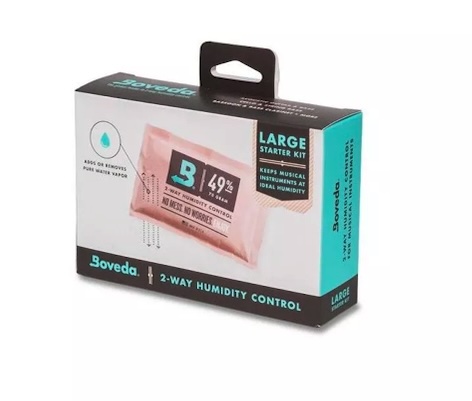 To ensure recommended humidity levels, you can also keep a humidifier in the case. For example, the Boveda 2-way humidity control automatically humidifies and dehumidifies the environment, keeping it at a constant relative humidity range of between 45% and 55%.